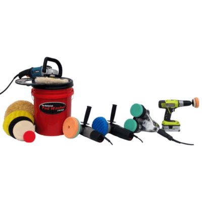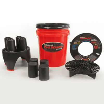 Système de nettoyage de tampon à polir, contenant 5 gallons.